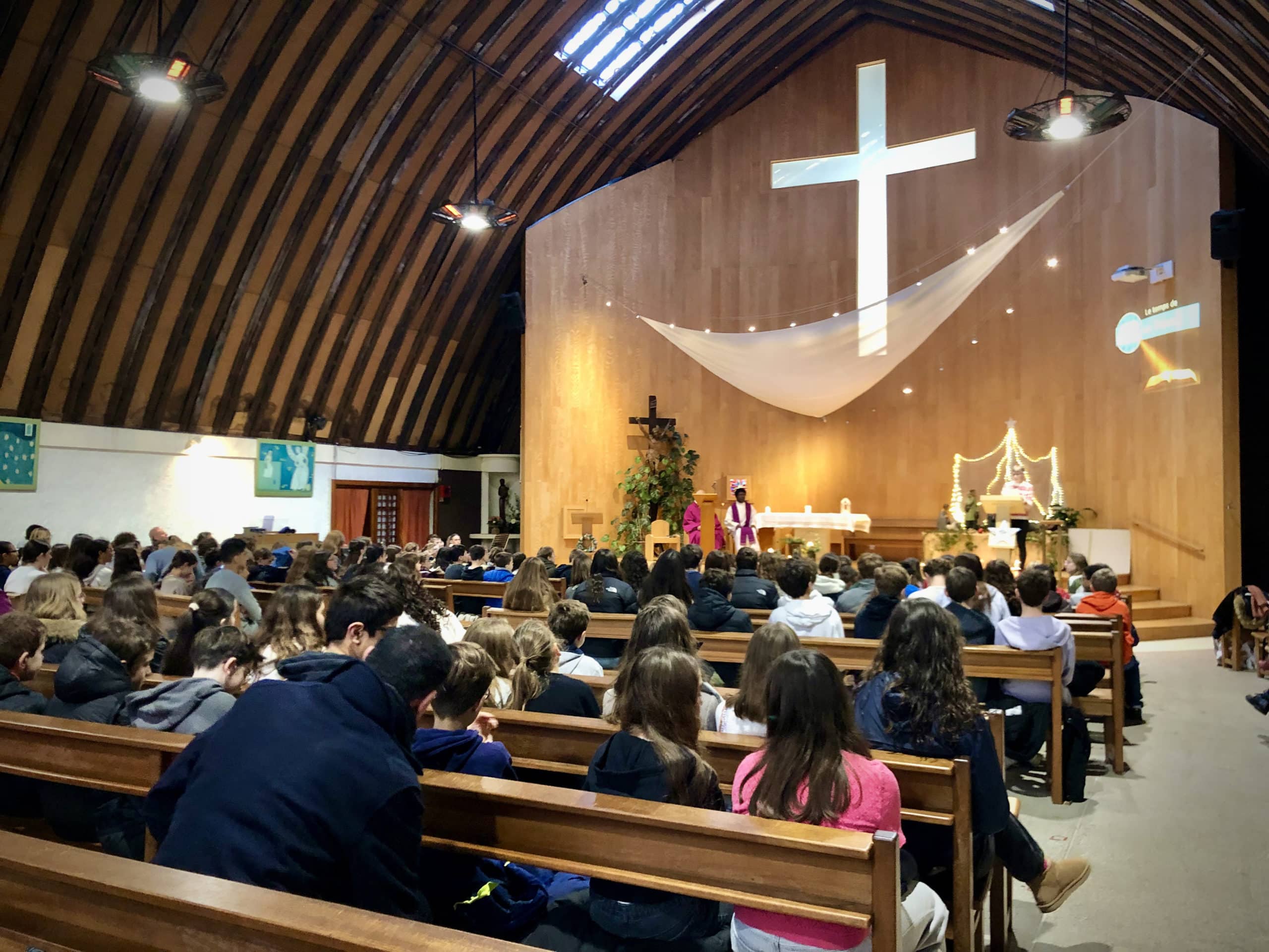 Les lycéens qui le souhaitaient se sont joints aux collégiens pour la messe de Noël de l’établissement à la veille des vacances.